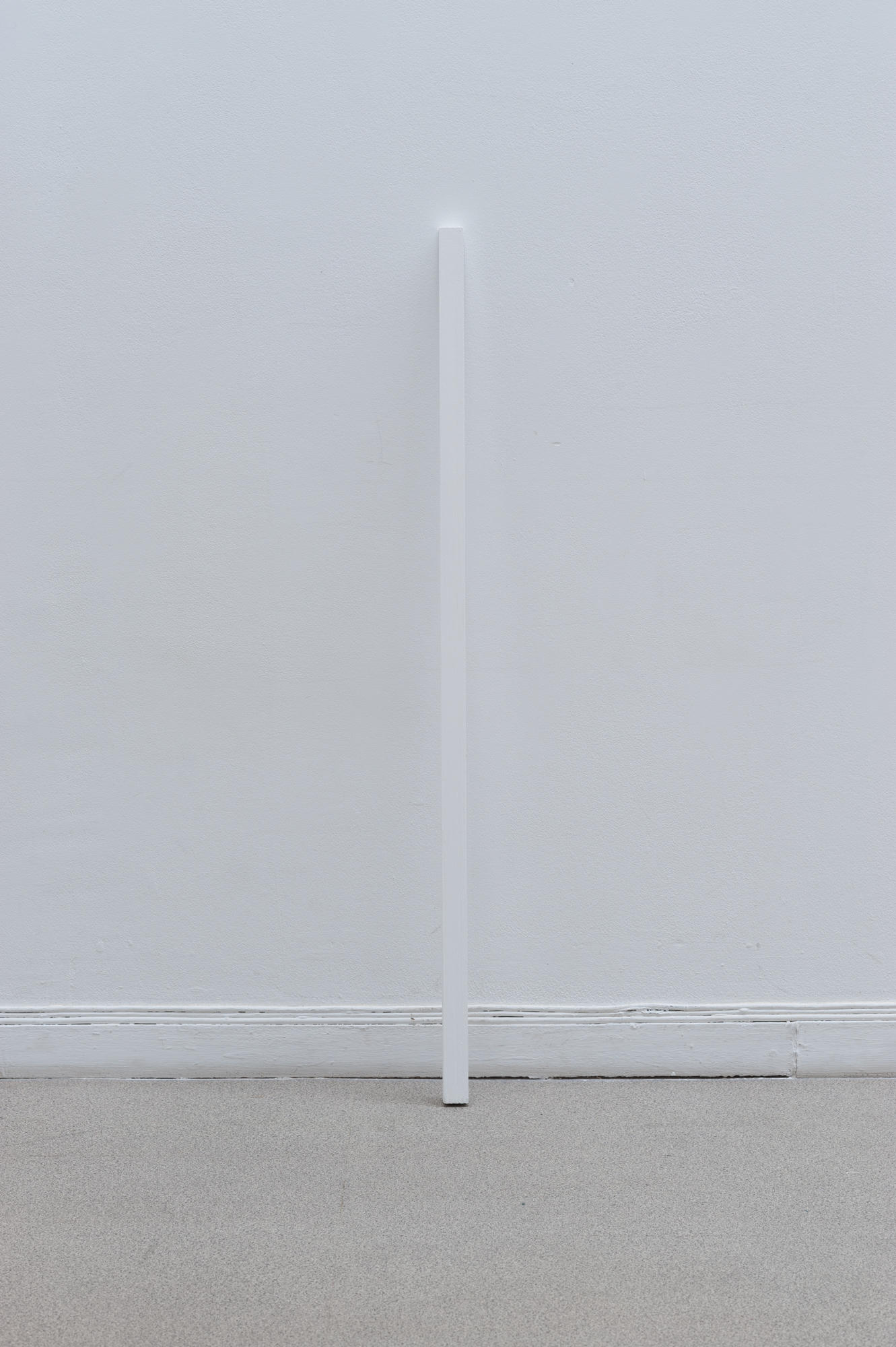 A wood stick, painted white, to be turned on its side daily, always in the same direction, so that it slowly moves along the wall for the duration of the exhibition
