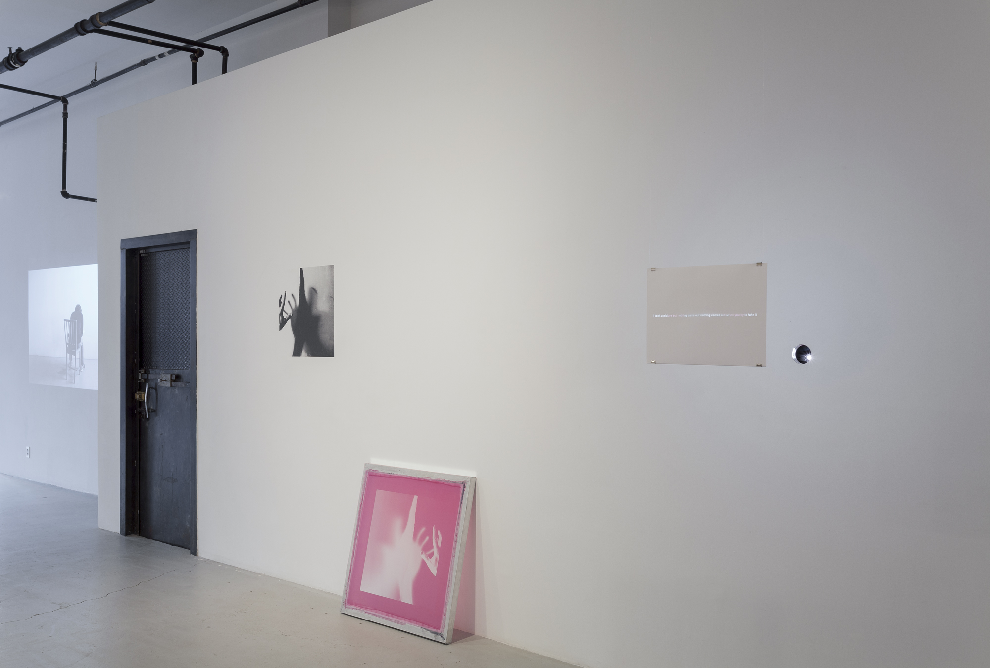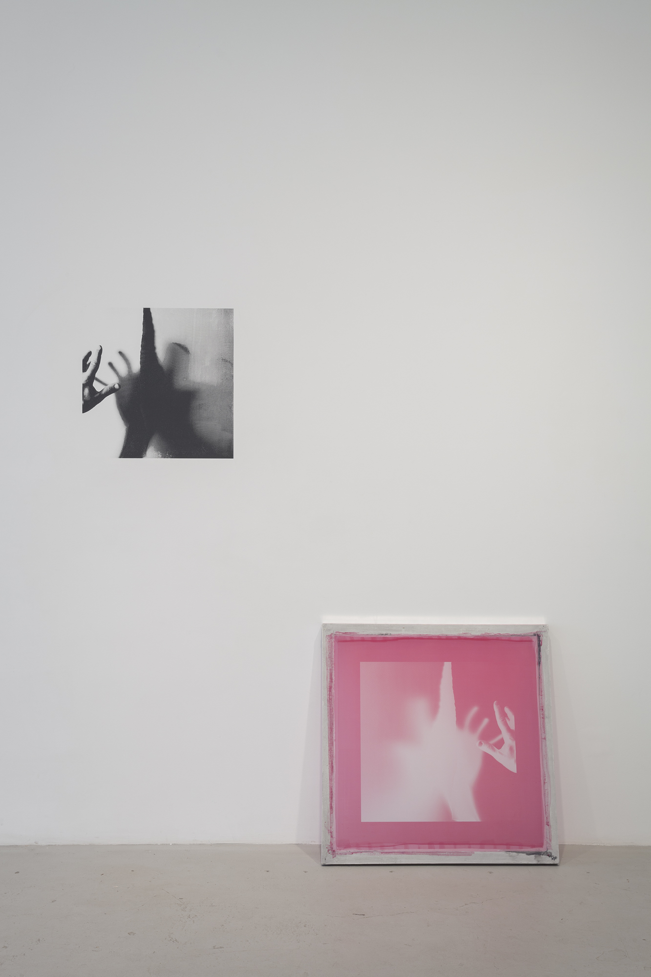 A series of eight serigraphy screens each titled with a variation on the same phrase. The work is the screen and the right to print with it. The screens were used to print directly on the wall for the exhibition.