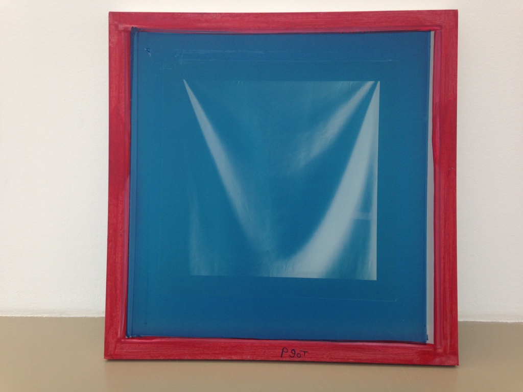 The works are the serigraphy screens, which were used in this instance to print directly on the wall. The prints are an accessory by-product of the works, i.e. the screens. This series was produced for the exhibition “Rideaux/ Blinds” curated by Marie de Brugerolle at the Institut d’Art Contemporain in Villeurbanne, France in 2015.