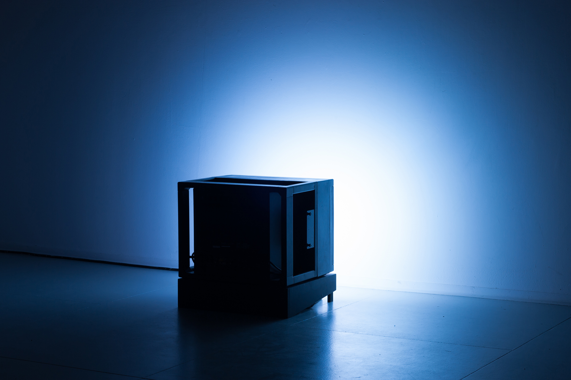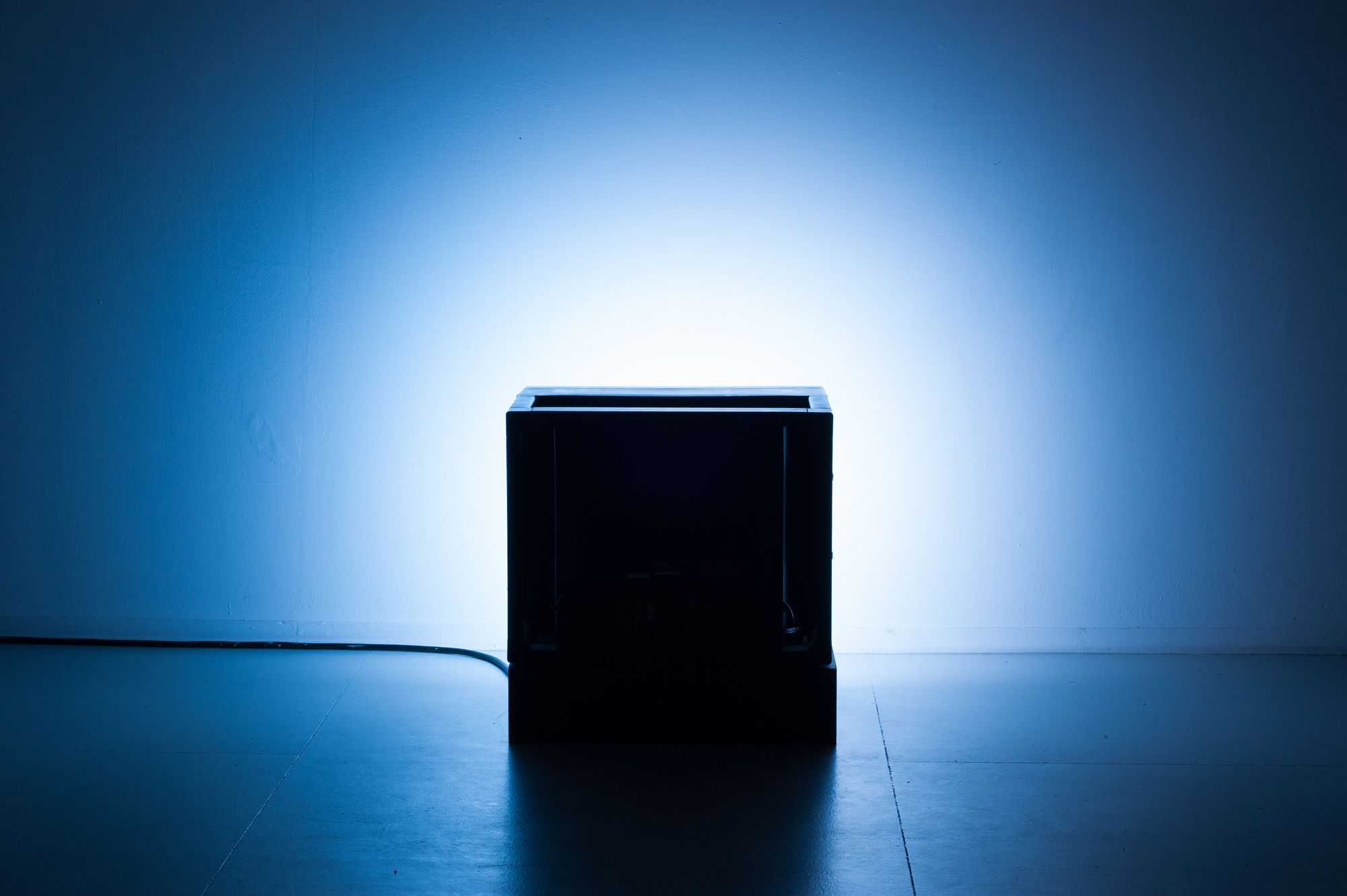 A color television is connected to a local television or cable signal and allowed to play, on mute, its colors tinting the surface of the wall it faces.