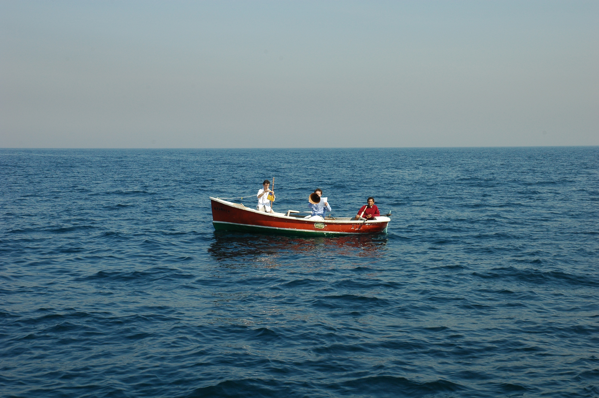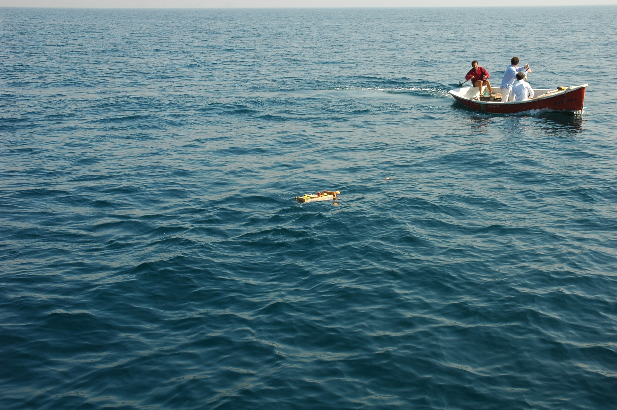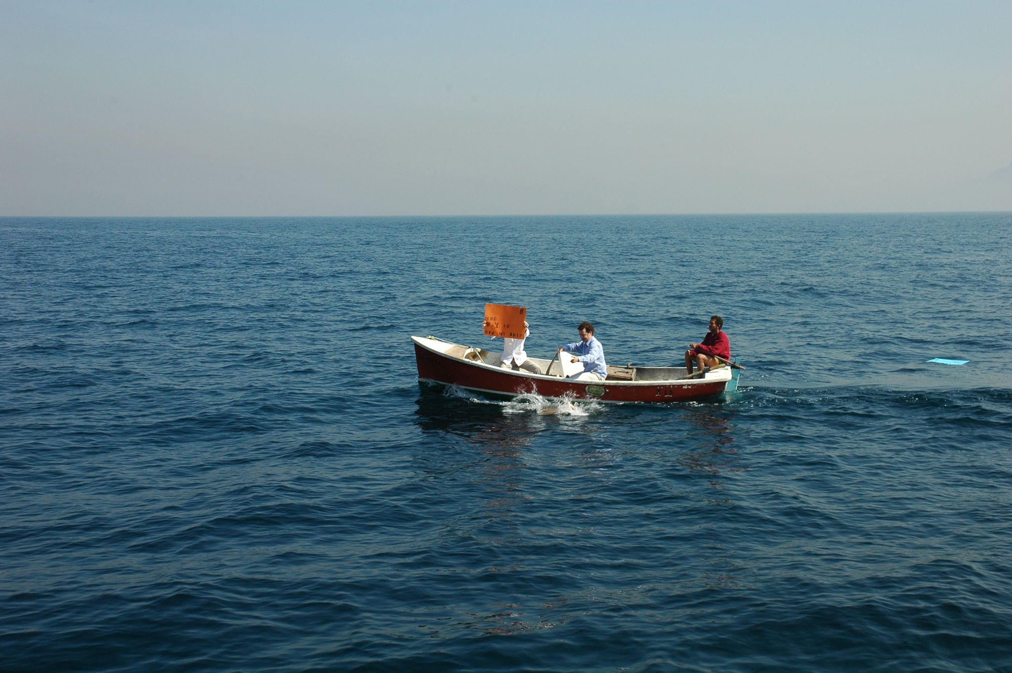 On 26 July, 2006, two boats met off the coast of Rio de Janeiro, near the Ilhas Cagarras. A larger boat carried the audience, while Jean-Pascal Flavien and myself arrived in a smaller fishing boat. When the two ships met, one of us read a text that we had written for the occasion, while the other signalled in Morse, with signal flags, and in semaphore. The two ships parted as the exchange came to an end. This performance was performed in 2009 on the river Thames for the Tate Modern and was last performed on the river Seine for the Palais de Tokyo in 2014.