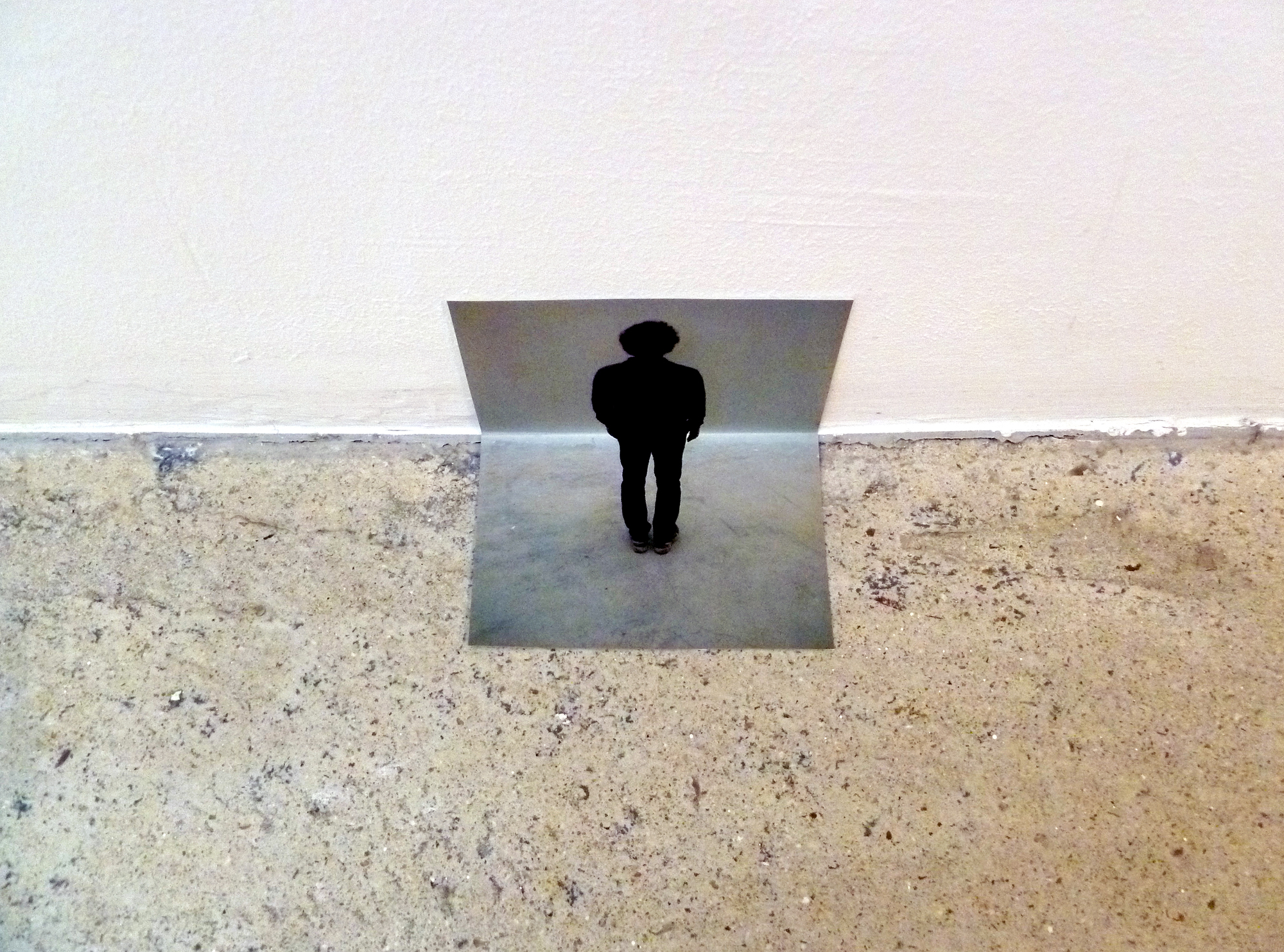 Repli in French means a hidden or tucked away corner. When people look at this work, they often bend over (or fold) to look closer at it, and thus mimic the fold of the image, which is a form of reply as well.
