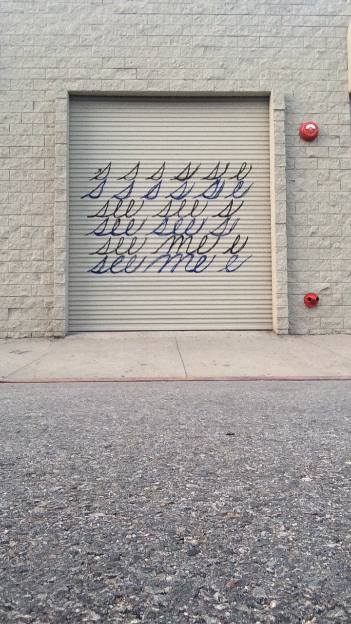 A mural painting for the metal gate of the gallery The Box in Los Angeles. The painting reproduces a page from a used handwriting manual, from the 1920s. This is a work about handwriting, both in the sense of normatized methods of handwriting, as well as the differences between any two individual’s script.